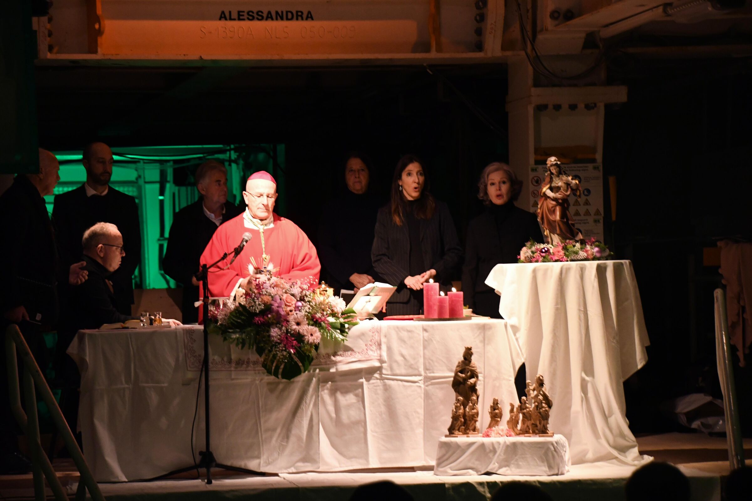 Ihr baut hier diese zweite Röhre des Gotthardtunnels mit grösster Professionalität und Genauigkeit. Es ist ein geniales Werk der Ingenieure, der Konstrukteure, der Geologen, der Logistik und vor allem der Bergleute; jeder trägt einen unerlässlichen Beitrag bei, jede und jeder ist wichtig. Es ist mir bei meinem Besuch bereits bewusst geworden, wie viele Risiken bestehen und wie wichtig die Sicherheitsmassnahmen und -vorkehrungen sind. Alles Menschliche muss stimmen und koordiniert werden. Wichtiger als alle menschlichen Einsätze sind jedoch der Schutz Gottes und sein Beistand. Aus diesem Grund ist es sehr wichtig, richtig und schön, dass wir heute hier drin in diesem Alpengestein die Eucharistie feiern und den Segen Gottes auf die Fürbitte der hl. Barbara erflehen. Sie ist eine mächtige Beschützerin von all dem, was hier geschieht. Möge sie euch immer beschützen.